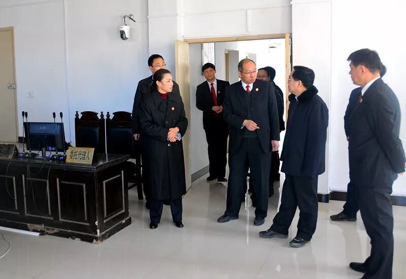 在驿城区法院水屯人民法庭,马锋军组长一行实地考察了综合审判法庭,详细询问了综合审判法庭使用情况,并听取了张娟院长关于驿城区法院2017年工作和水屯人民法庭工作开展情况汇报。马锋军组长对驿城区法院2017年工作取得的成绩表示充分肯定,并对驿城区区委、区政府对驿城区法院工作的大力支持表示感谢。马锋军组长并就加强人民法庭工作提出三点要求:一要抓好人民法庭队伍建设,充分发挥人民法庭化解矛盾纠纷的前沿阵地作用,争取在2018年取得更加优异的成绩。二要继续完善人民法庭的便民利民措施,运用好信息化办公系统,努力为人民群众提供优质、高效的司法服务。三要加大对人民法庭的投入力度,人、财、物要向人民法庭倾斜,同时省法院将积极帮助人民法庭解决存在的困难和问题。