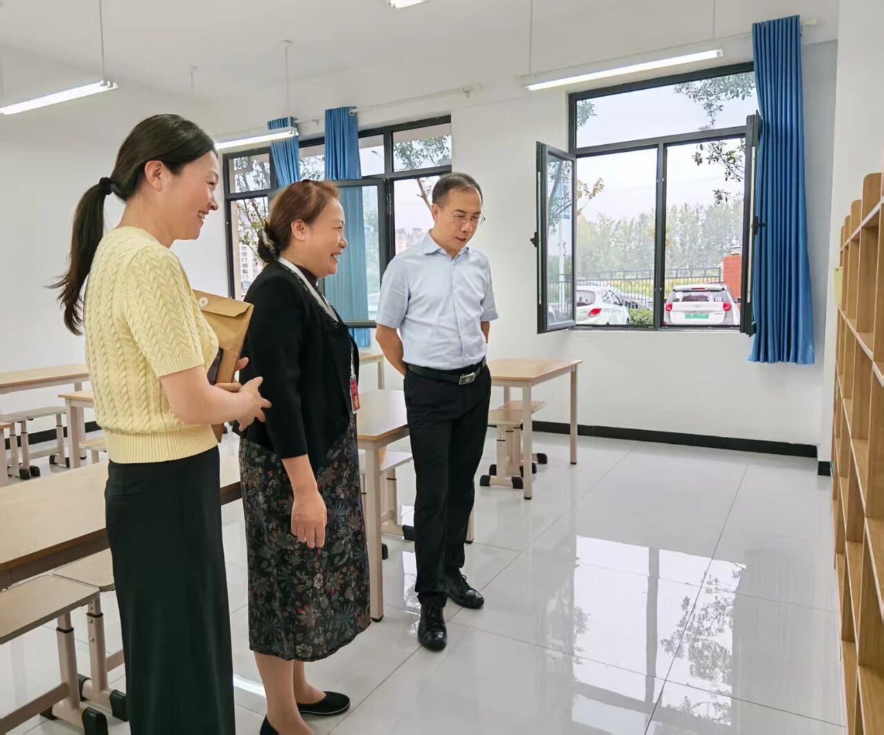 (驻马店中院党组书记、院长邹波,汝南法院党组书记、院长肖萌菊走访全国人大代表、汝师附小校长王红艳)