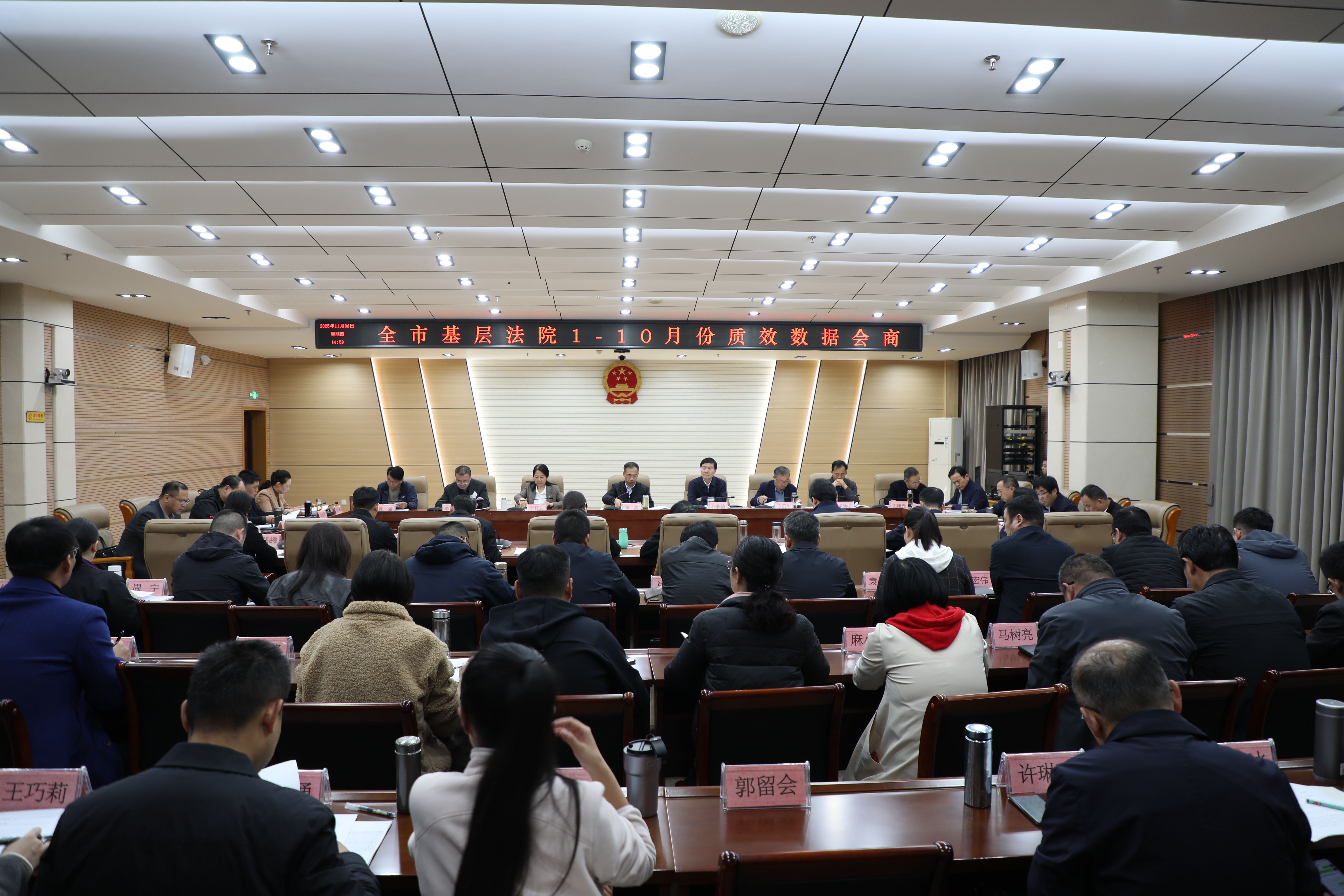 11月6日下午, 驻马店中院召开全市基层法院2025年1-10月份质效数据会商会,进一步分析当前面临的形势和存在的问题,强化思想认识,为争创全省先进法院凝聚力量。市中院党组书记、院长邹波主持会议并讲话。