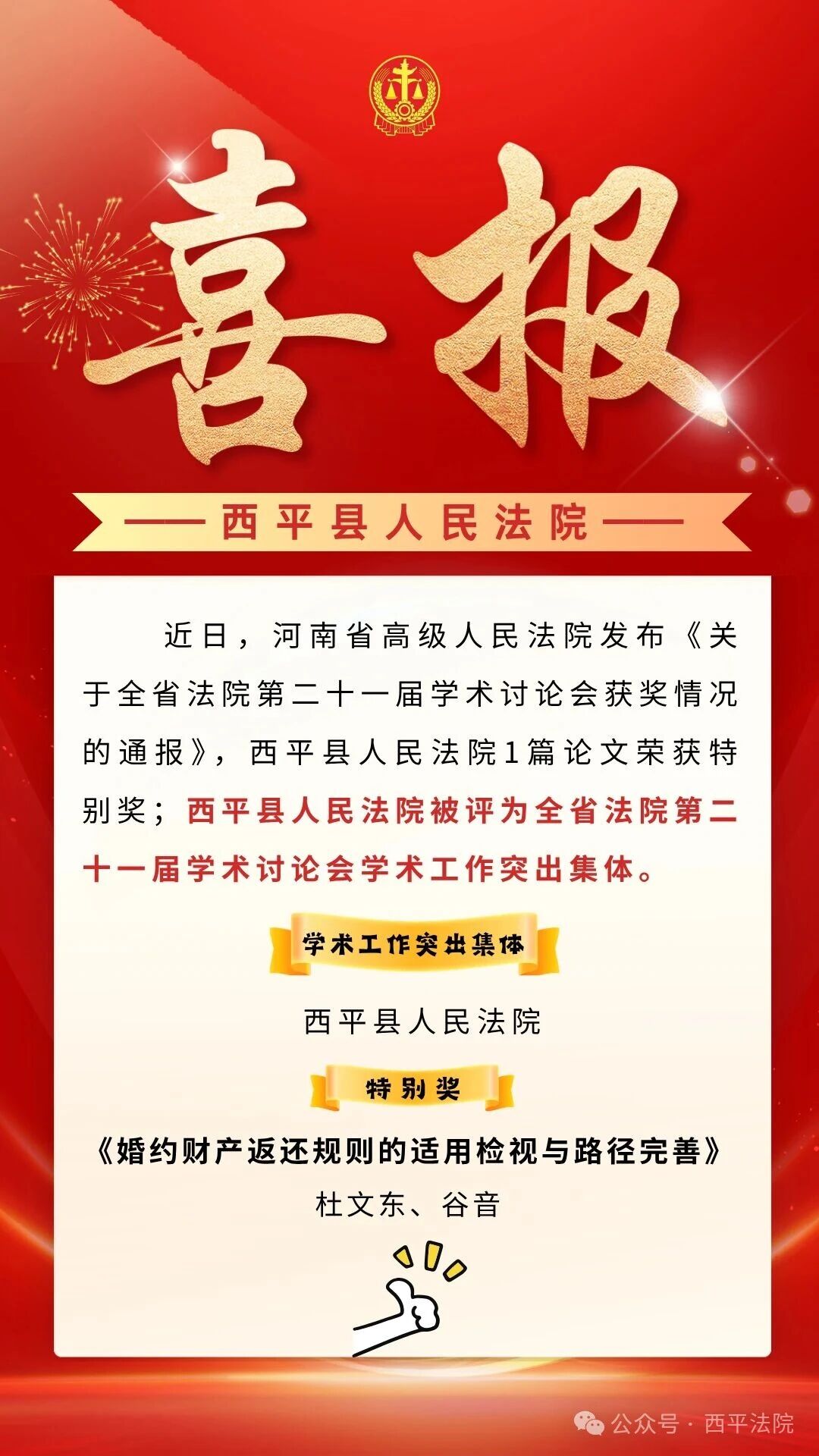 喜报丨西平县人民法院学术论文再创佳绩!